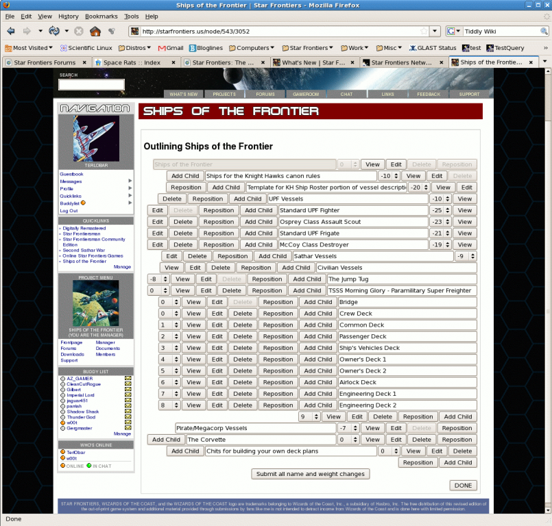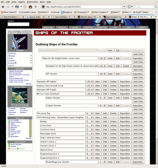 ![]() November 24, 2008 - 6:06pm | Bill, here's an updated screenshot after your change![]() You can click on the image for a larger version. I think if you can shorten up the text box by about 10 characters it will all be fine. The alignment issues I mentioned in chat actually seem to be just due to the right justification and the fact that on the lines that should be indented the least, the "Add Child" button is wrapped down to the next line. Ad Astra Per Ardua! My blog - Expanding Frontier Webmaster - The Star Frontiers Network & this site Founding Editor - The Frontier Explorer Magazine Managing Editor - The Star Frontiersman Magazine |